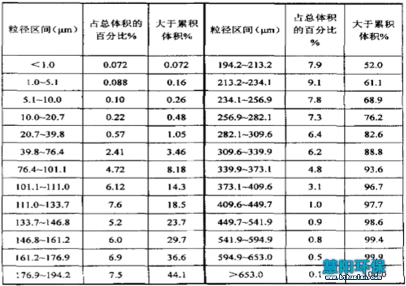 1 、焦炭成熟的情况下,出焦时炉门口的粉尘粒径分布如下表: