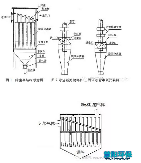 一般为了提高捕集效率,相将两个旋风除尘器串联使用的情形。多级旋风除尘器,它都装在一个圆筒之向,由进入以后,气体经级圆筒和第圆筒旋风处理,但排灰一、二级合一出口,另外有一个出口。这是为了提率。这种多级旋风除尘器,比串联旋风除尘器显然缩小了体积。多级旋风除尘器我公司早应用于电石炉正压大布袋除尘器系统,由于其具有很高的除尘效率,可减少正压大布袋除尘器系统引风机的磨损,同时也降低了布袋除尘器的负荷。