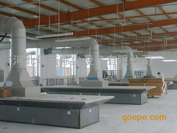 华蓝公司设计有在打磨台底部设计大风量吸尘罩、和三面做吸尘罩、底部压风侧面吸风式、平台中间做罩吸尘式。