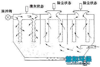 ②从滤袋表面被下来的成片粉尘有足够的时间降落入灰斗,再次飞扬的几率很小。