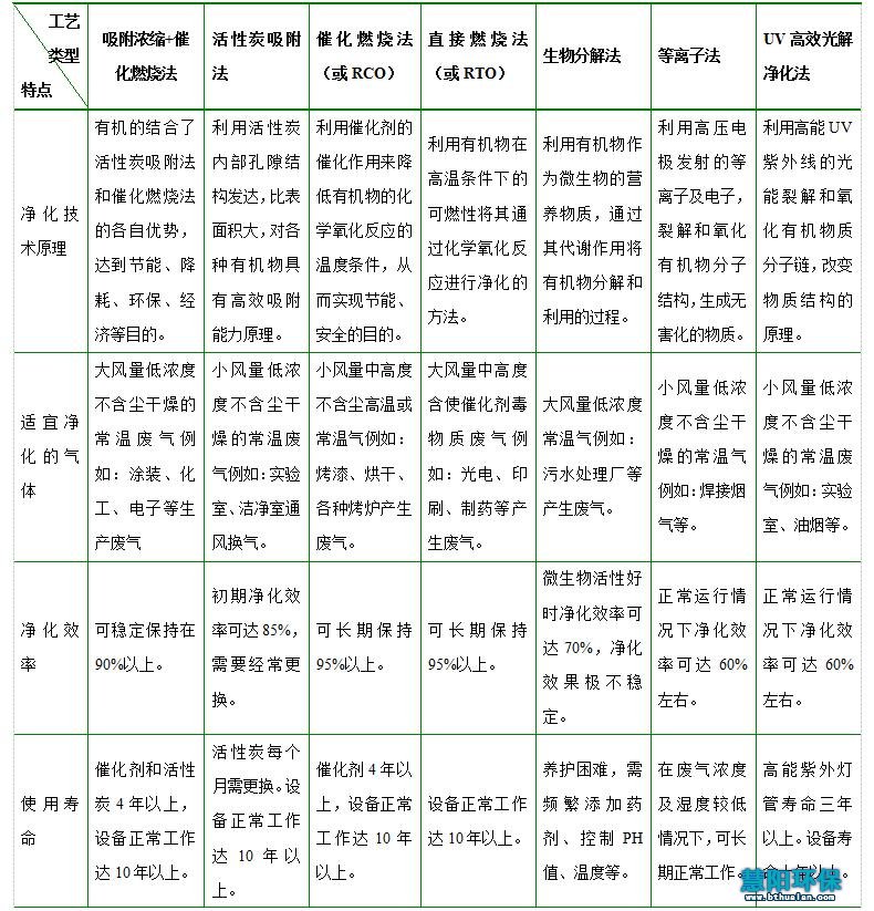 催化燃烧设备的各种工艺类型特点(详见下图):