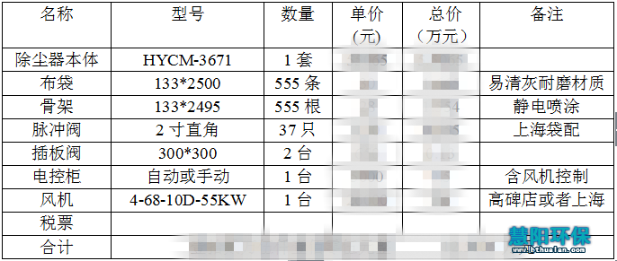 慧阳环保针对邯郸石料厂生产粉尘情况设计了一套——石料厂除尘器系统(为脉冲在线清灰方式),下文主要根据其工艺原理及优点做了报价方案,详细参数如下,价格咨