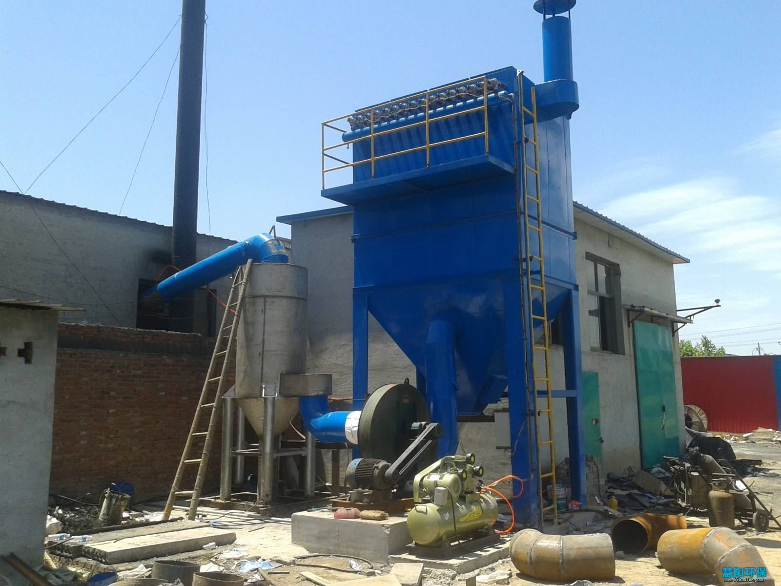 铸造厂生产粉尘污染源主要来来自熔化、浇注、落砂、抛丸、打磨、制芯、混砂造型工序,主要污染物为烟粉尘。针对铸造电炉粉尘特点及环保部门排放要求,慧阳公司选用了布袋除尘器进行铸造厂电炉粉尘的治理,一般安装流程为电炉——集尘罩——管网——布袋除尘器——风机——排放。