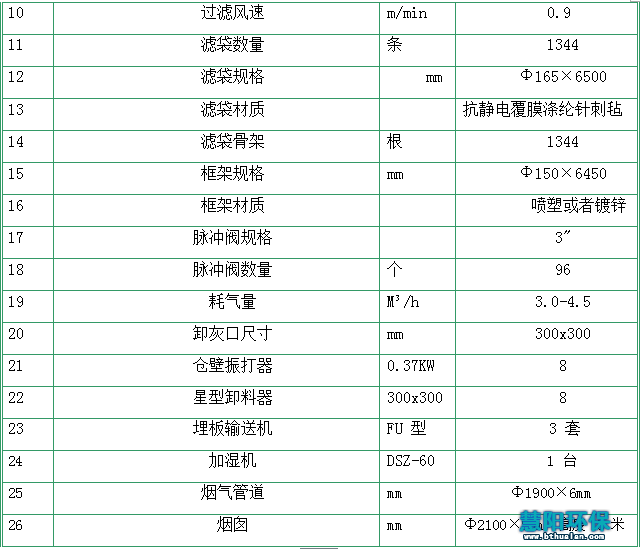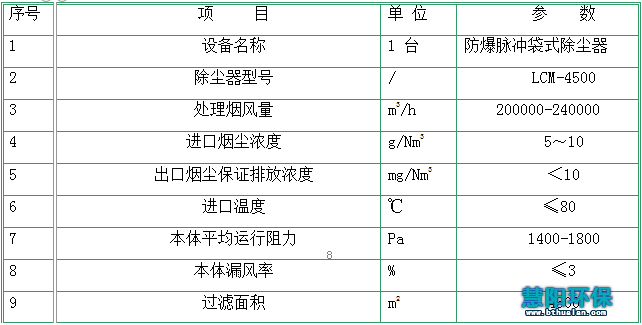 注:因考虑到4.3米焦炉原有焦炉炉门导烟罩需要改造,风机增大4万风量,如需改造用于倒烟罩处,故而一期和二期除尘器过滤面积相同。