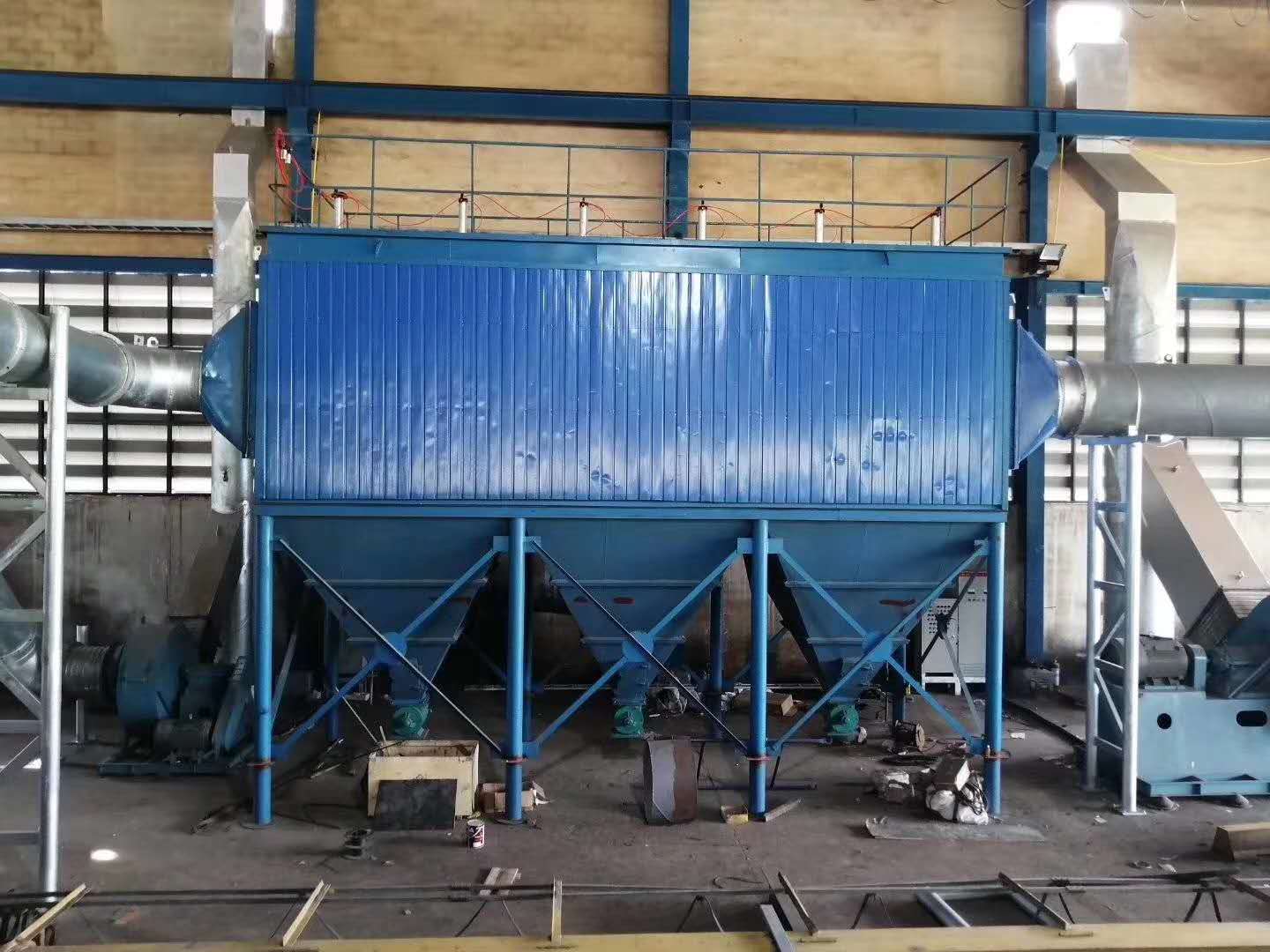 2、预喷涂装置:锅炉在投助燃油时烟气当中会有大量的油烟,由于会油烟吸附在布袋表面造成布袋堵塞影响过滤,预喷涂装置会在锅炉喷入助燃油是往烟气管道内喷入石灰粉来吸附烟气内的油烟,从而解决布袋堵塞问题。
