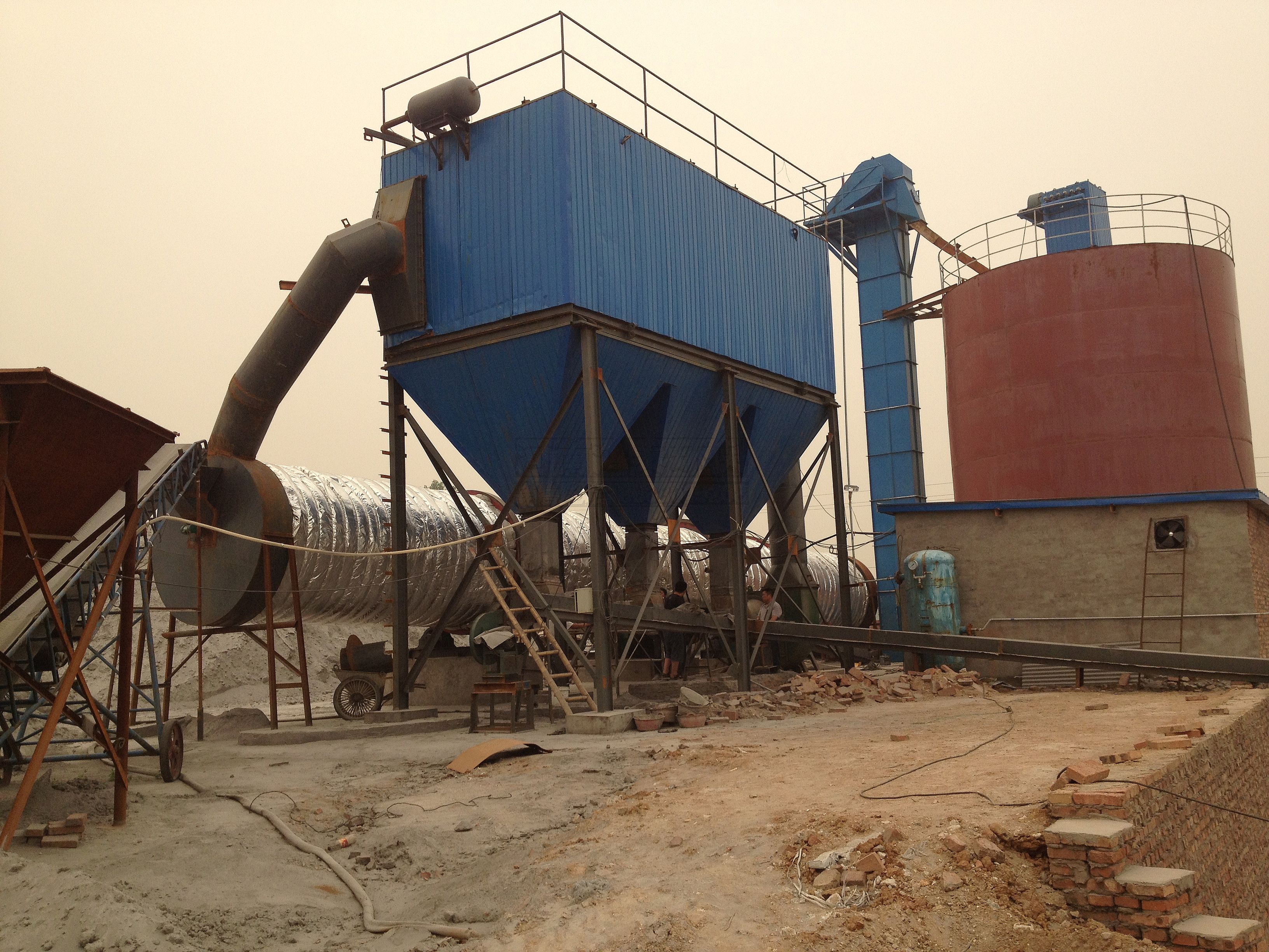 ②启动主引风机,逐步打开引风机阀门,使烟气进入除尘器,烘袋约20分钟左右,待引风机烟囱无任何可见水蒸气时,即可正常生产;