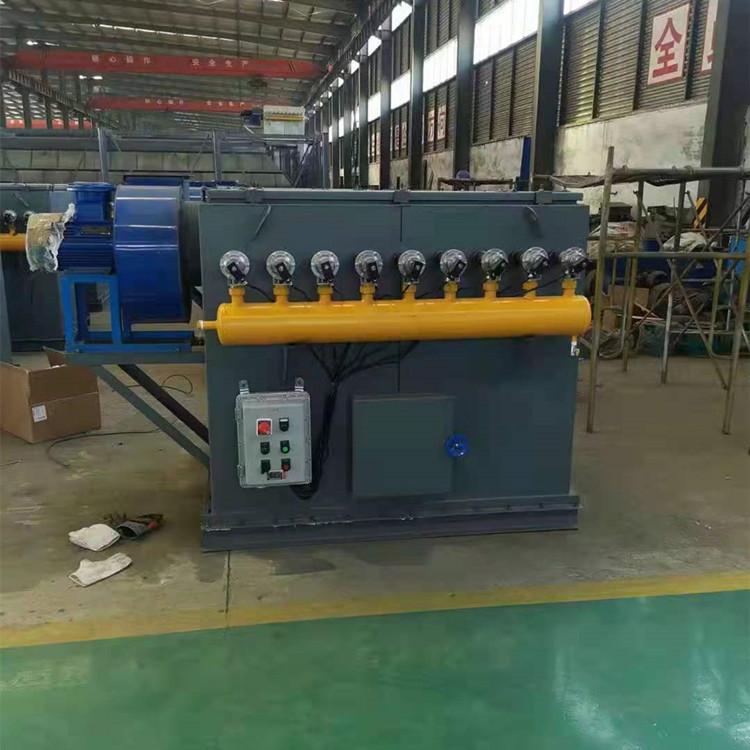 皮带机头滤筒除尘器以滤筒作为过滤元件组成,采用垂直式滤筒安装结构,便于粉尘吸附及清灰,且由于在清灰时滤料的抖动较小,使滤筒的寿命大 大高于滤袋,维修费用低。因设备制作的小型化设计,适合于狭小场所使用的通风除尘设备。该除尘系统选用防 静电除尘滤芯、防 爆型脉冲阀、箱体进行防 爆口设置、风机控制进行防 爆设置。基本结构由箱体,风机,滤筒,集尘器及微电脑控制部分等组成。其工作原理:我们在皮带机头处设置鼓风机,在机头上方设计密闭捕集罩捕集粉尘,使含尘气体在除尘风机的引力作用下,经管路进入除尘器进行净化处理。皮带机输送过程中产生的含尘气体由由风机经进吸尘罩吸入箱体,经过滤袋(滤筒)进行过滤,粉尘颗粒被阻溜在滤袋(滤筒)表面,过滤后的净化气体经出风口排出。整个除尘过滤过程是一个:重力、惯性力、碰撞、静电吸附、筛滤等综合效应的结果。