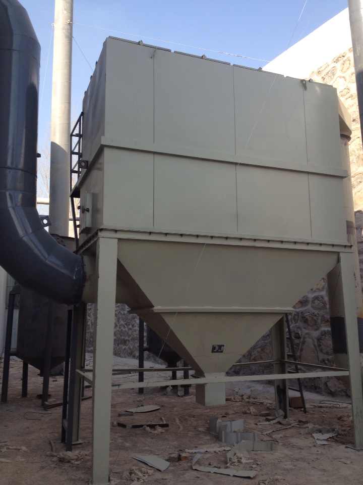 除尘具体流程:引风机把含尘气体从进气口引入中壳体内,干净的气体透过滤袋由文氏管进入上壳体,而由净气出口排出,而粉尘被阻留在滤袋外壁,随着时间的延长,吸附在滤袋上的粉尘越来越厚,滤袋阻力越来越大,此时,脉冲控制仪发出信号,程序自动控制各脉冲阀的开关,使高压气源经喷吹孔、文氏管向滤袋内喷射,由于高压气的作用,使滤袋发生急剧的膨胀引起冲击振动,使吸附在滤袋表面的粉尘抖落在灰斗里由输灰机构排出。