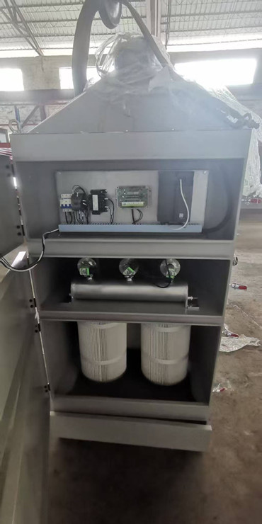 通过负压吸气原理,烟尘经阻火器拦 截火花后,依次经过重力沉降室(分离粗颗粒)、PTFE覆膜滤筒(过滤0.3μm以上微粒,效率≥99 %)及活性炭层(吸附有 害气体),蕞终实现达标排放。脉冲清灰系统自动清 除滤筒积尘,保 障持续高 效运行。