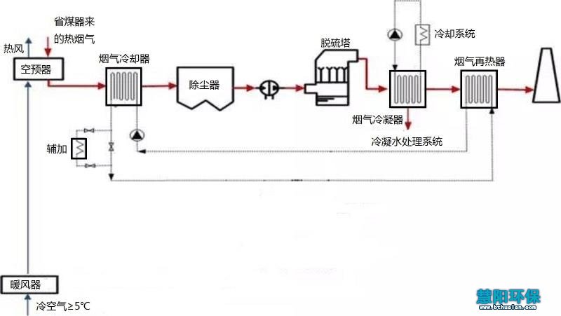 (3)利用脱硫塔入口的烟气热量,来解决脱硫塔出口烟气升温过程中需要消耗大量的热量 。